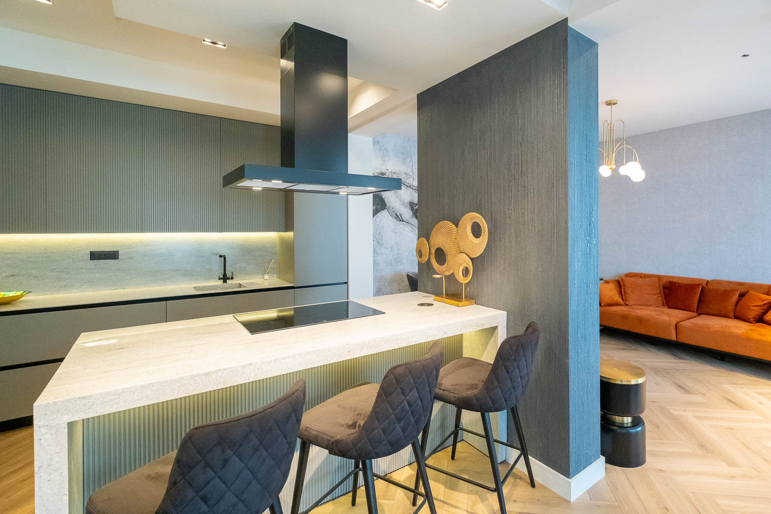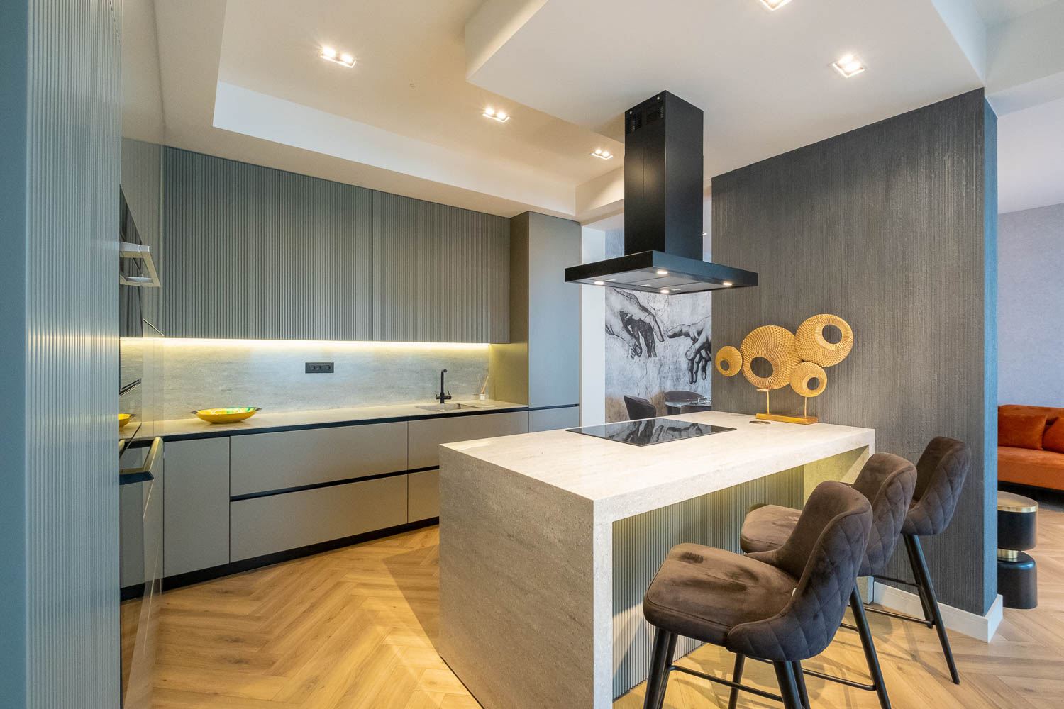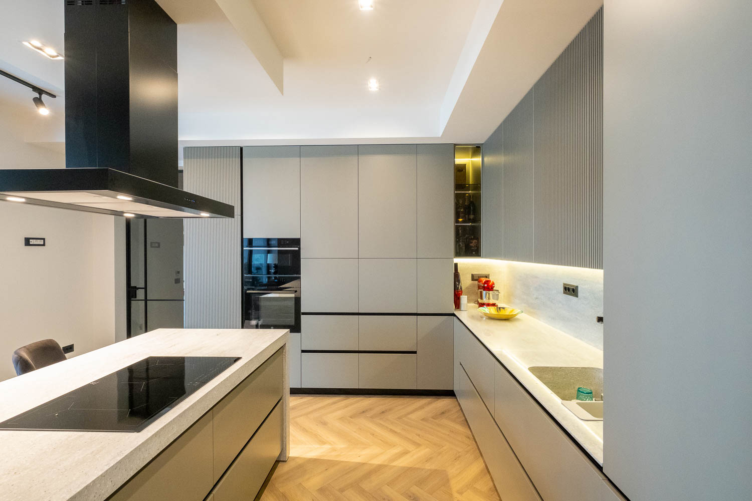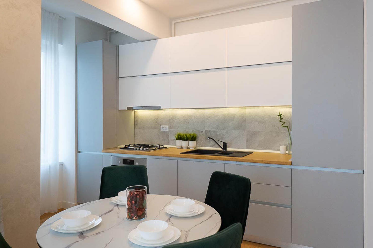 Casa perfectă este cea care nu lasă privirea înghesuită într-un spațiu neordonat. Toate mișcările trebuie să urmeze cu naturalețe un traseu funcțional, să găsească totul la îndemână: de la frigider, la blatul de lucru, până la spațiile de depozitare.